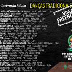 Considerando o bom andamento das inscrições e oportunizando aos concorentes individuais também realizarem as suas inscrições ficou definido que os interessados em participar das modalidades gaitas, declamação, intérprete vocal, chula, trovas, assim como as invernadas de outras categorias de entidade já inscrita, (pra lista de espera) ainda podem se inscrever até o prazo final que consta em regulamento, ou seja, 15h do dia 30 de abril de 2018, desde que a ficha seja encaminhada pelo mesmo representante que já encaminhou a primeira.