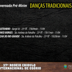 As vagas para a modalidade Danças Tradicionais do 37º Rodeio Crioulo Internacional de Osório foram preenchidas já no primeiro dia da abertura das inscrições, a procura é grande para participar das provas artísticas. As inscrições iniciaram no último dia 11/04 às 15h no site www.rodeiodeosorio.com.br. A Comissão Organizadora está divulgando os grupos que preencheram as vagas abertas, os demais grupos seguem na lista de espera (suplentes) que em breve também será divulgada.