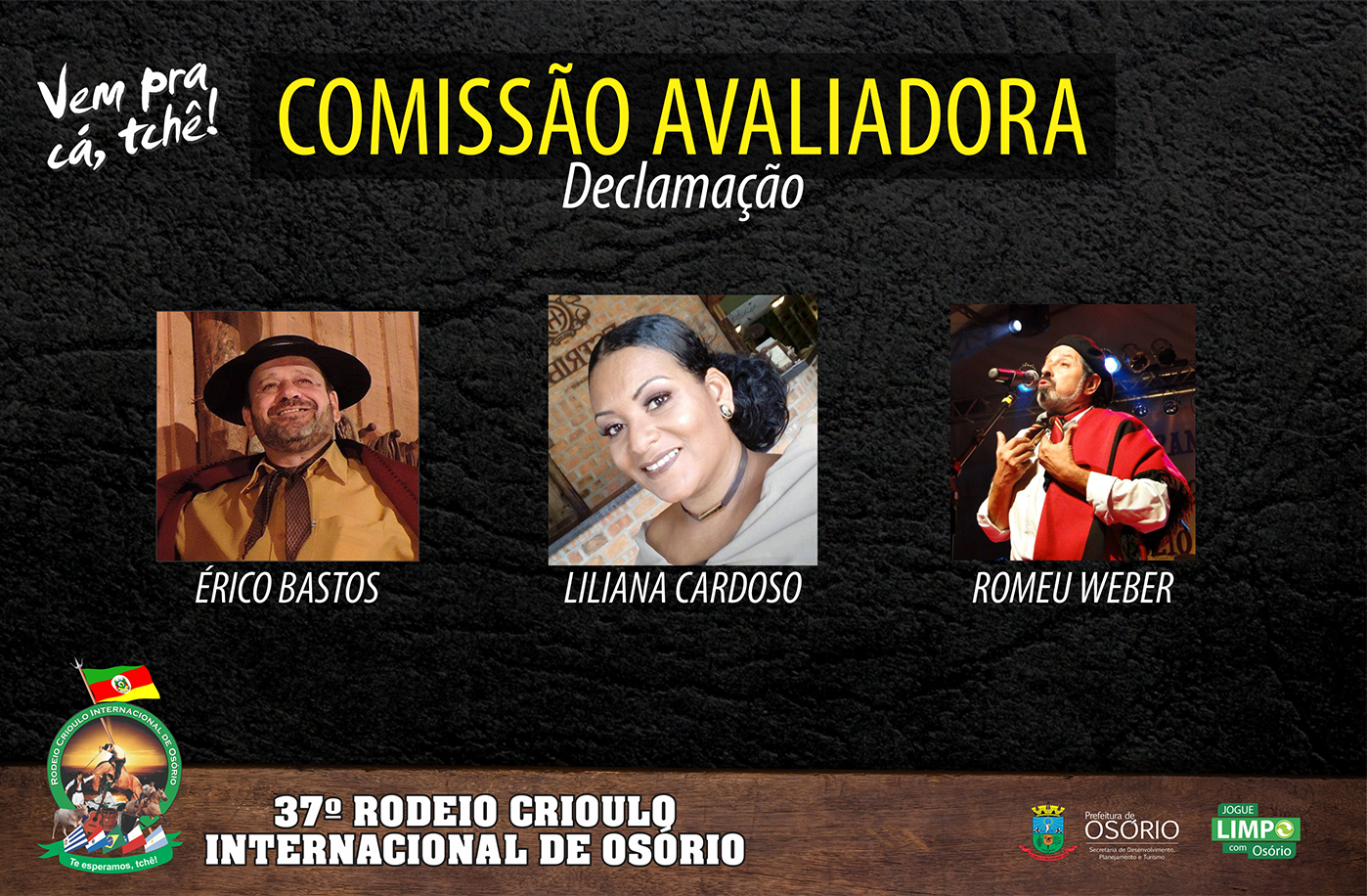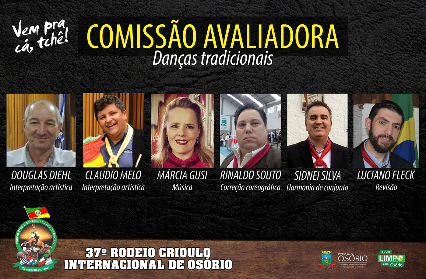 A comissão organizadora do 37º Rodeio Crioulo Internacional de Osório, apresenta a comissão avaliadora das modalidades artísticas.
